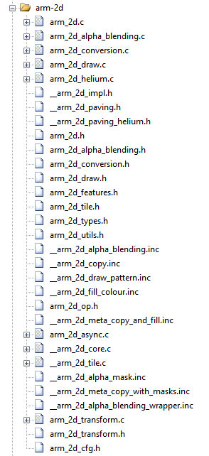arm_2d_helium.c in the compilation process, as the C source files are constructed with environment detection in pre-processing phase.arm_2d.h is sufficient to get all the services and APIs ready for you.Make sure that the library is initialised by calling arm_2d_init() before using any of the services.