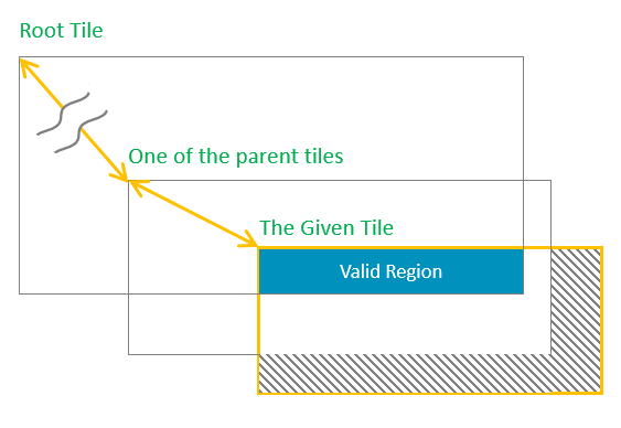 NOTE: Even if a tile appears inside the root tile, but there could be a string of parents between the target tile and the root, as long as the tile is out of the region of any one of the parents, it is still considered as out of region.