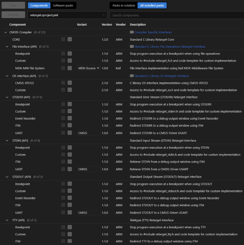 The following steps are required to install the ARM::CMSIS-Compiler pack and to use the software components that are shipped with the CMSIS-Pack.