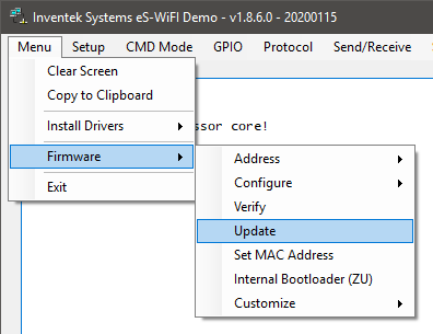 If you want to flash a different firmware later, please visit Inventek's Firmware page for the latest binary files.