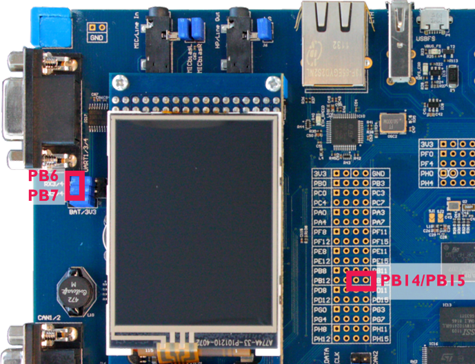 - USART1: PB6 (USART1_TX) and PB7 (USART1_RX)