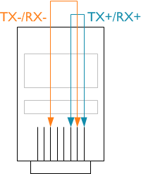 To perform loopback communication tests, it is required to connect the RX and TX lines of the Ethernet cable together: