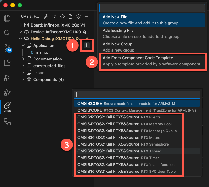 In the CMSIS view, you can add template files to the project: