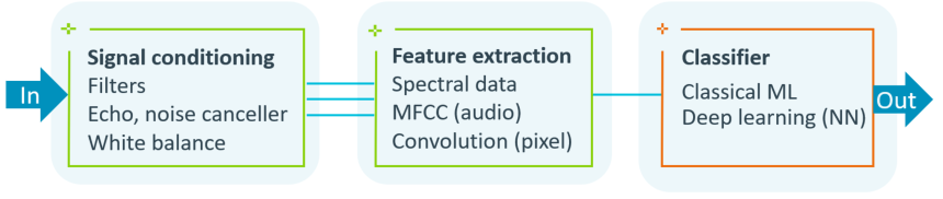 By optimizing signal conditioning and feature extraction, the complexity of the ML classifier. More DSP pre-processing helps therefore lowering the overall performance that is required for a ML application.