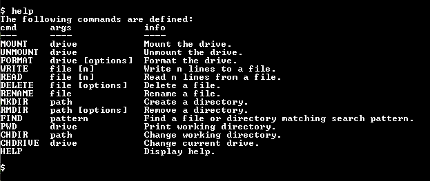 You can now type the listed commands and send arguments directly to the FileSystem API functions.
