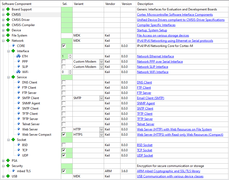 The mbed TLS component provides an API for secure communication. When selecting this software component, the mbedTLS_config.h configuration file is added to the project. The proper usage of this file is out of the scope of this document. For further information, check the online documentation of .