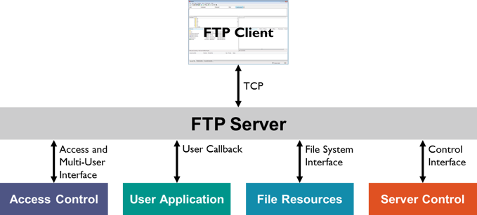 FTP Server is used for file transfer supporting sub-directories, log-in and a set of manipulation commands. More...