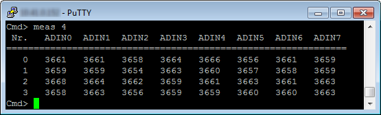 In the following example, the MEAS command is given by the user using the Telnet client.