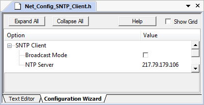 The SNTP client configuration file Net_Config_SNTP_Client.h contains the following settings: